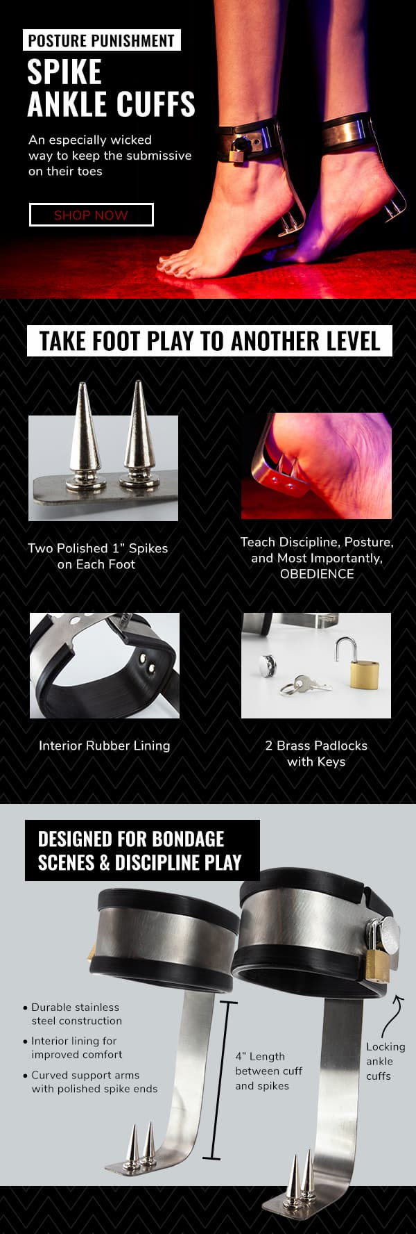 New Product Announcement: Punishment Cuffs Posted on March 24, 2026 Related Tags:Ankle CuffsBDSMfetish wearsex gearsex wearStockroom